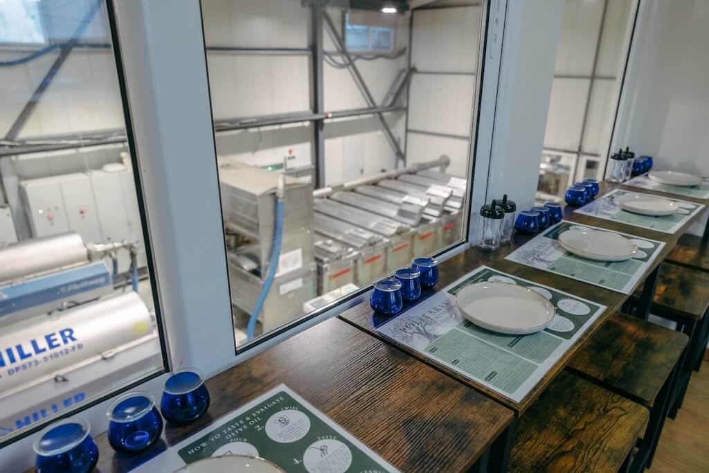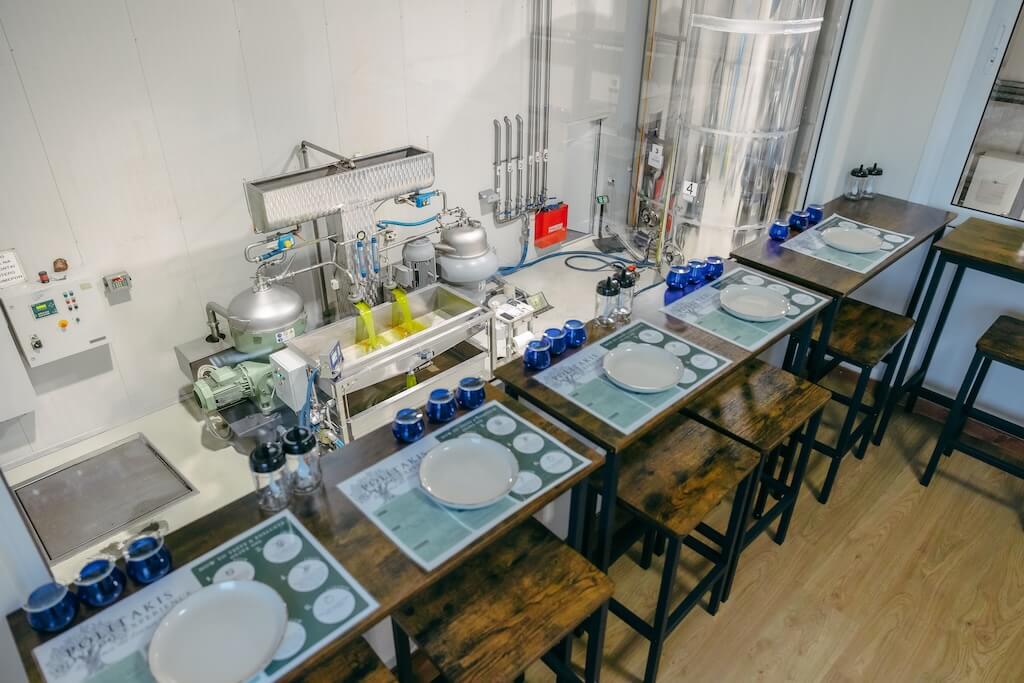 Visitors have the opportunity to watch the entire fresh olive oil production process live, from a specially designed viewing area — starting from the arrival of the olives and continuing through every stage up to the final production phase. The experience is offered exclusively to private groups, by reservation only, and runs from early October until the end of February.